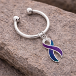 Show your support with this Teal and Purple Ribbon Awareness Keychain, a meaningful accessory designed to represent suicide awareness and sexual assault awareness. Featuring a two-tone teal and purple ribbon charm, this keychain is a thoughtful way to raise awareness, honor survivors, and promote important causes.